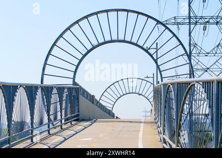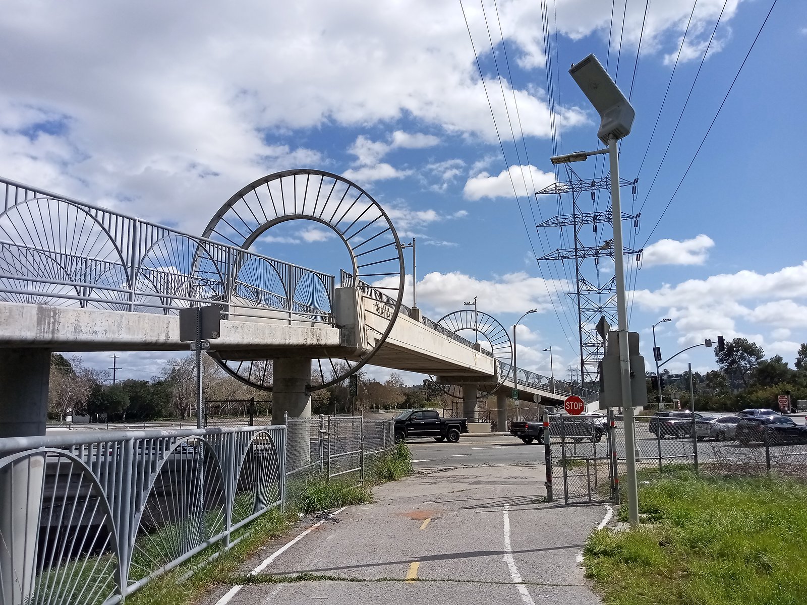 los-angeles-california-april-21-2024-modern-pedestrian-bridge-spans-los-angeles-river-with-power-lines-in-background-2XTT5XX